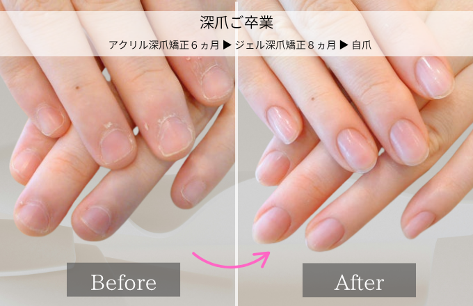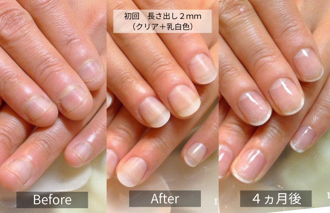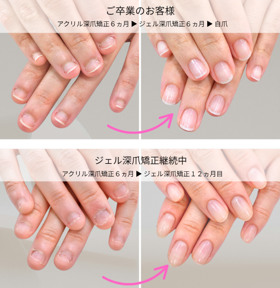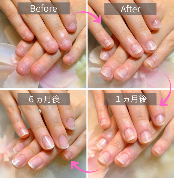 また長年の経験から、爪のピンクの部分(ネイルベッド)は、4ヶ月よりも半年、1年と続けるほどきれいに伸び、リバウンドし難いことがわかっています。